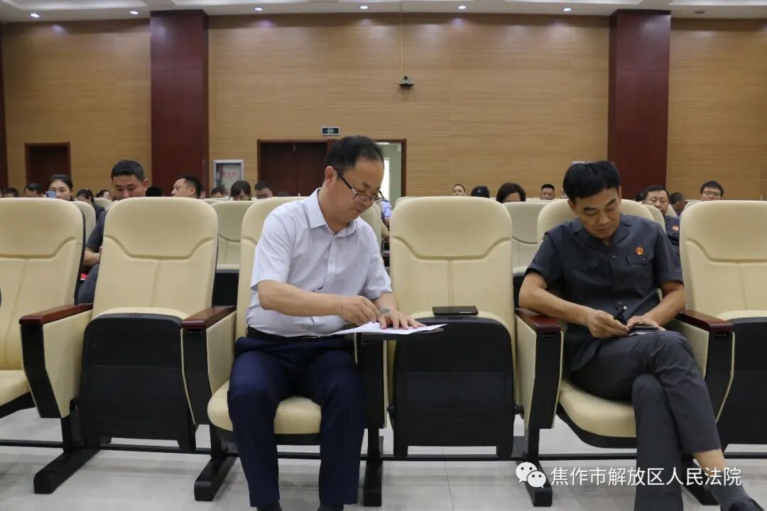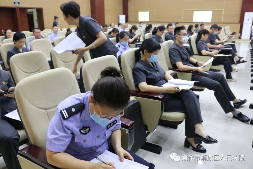 为强化全院党员教育管理,解放区法院组织开展了全院党员干警集中党建知识测试。院领导赵玉军、郑玉宝、贾成义、成玮、王永红、安新红与全院党员干警一起参加了测试。