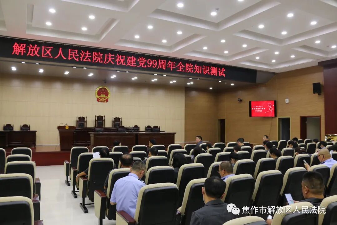 中国共产党建党99周年之际,为弘扬党的优良传统,激励广大党员干警进一步坚定信心、振奋精神、砥砺奋进,解放区人民法院组织开展系列庆祝活动。
